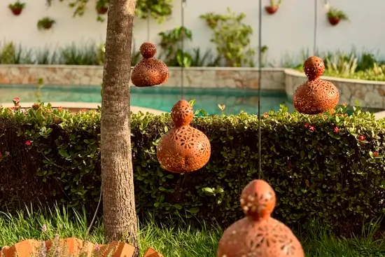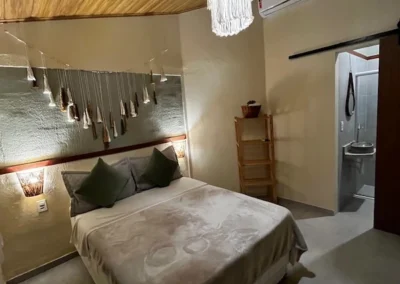 A pousada valoriza a cultura e o artesanato local, compondo ambientes com peças confeccionadas em material reciclado, painéis e peças de artistas da terra.